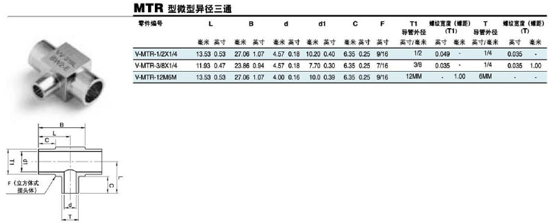 V-MTR-1/2*1/4,V-MTR-3/8*1/4,V-MTR-12M6M,微型異徑三通