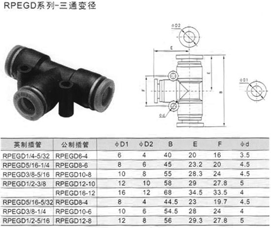 RPEGD1/4-5/32,RPEGD5/16-1/4,RPEGD3/8-5/16,RPEGD6-4,RPEGD8-6,RPEGD10-8,三通變徑接頭