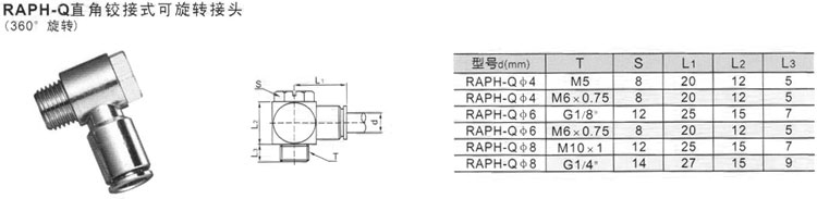 RAPH-Q4,RAPH-Q6,RAPH-Q8,直角鉸接式可旋轉(zhuǎn)接頭
