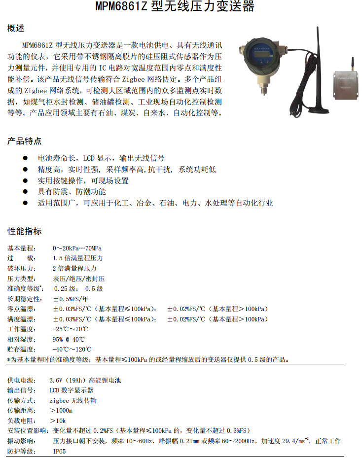 MPM6861Z-0G,MPM6861Z-20G,MPM6861Z-70A,MPM6861Z-0S,MPM6861Z-20S,無(wú)線壓力變送器