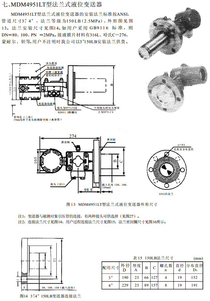 MDM4951LT-4E,MDM4951LT-5E,MDM4951LT-6E,法蘭式液位變送器