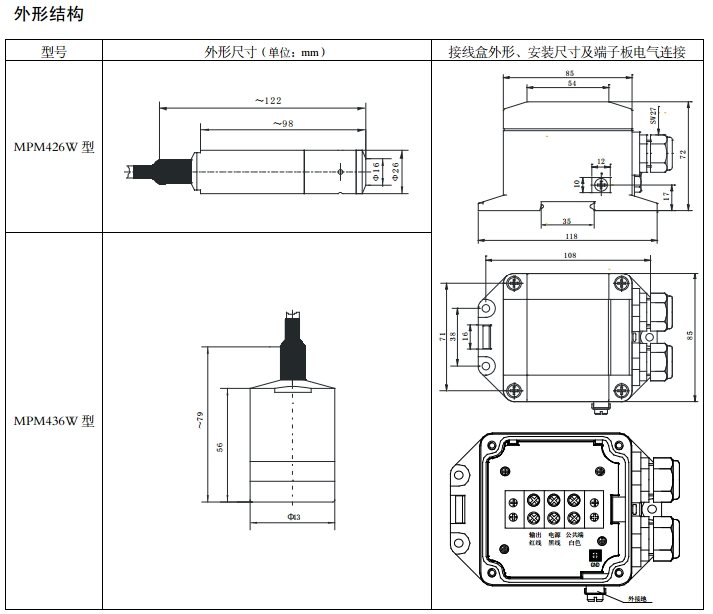 MPM426W-1,MPM426W-2,MPM426W-5,MPM436W-0.5,MPM436W-2,投入式液位變送器