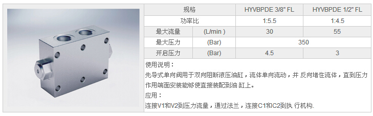HYVBPDE 3/8" FL,HYVBPDE 1/2" FL,先導(dǎo)式雙單向閥