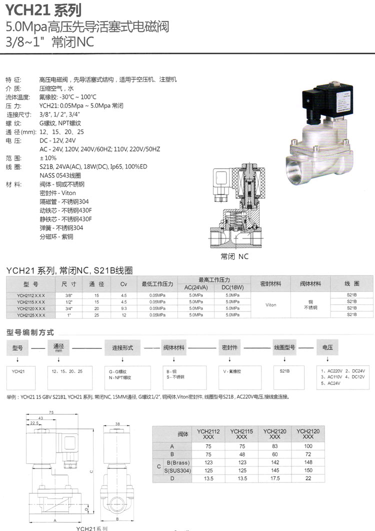 YCH2112,YCH2115,YCH2120,YCH2125,高壓先導活塞式電磁閥
