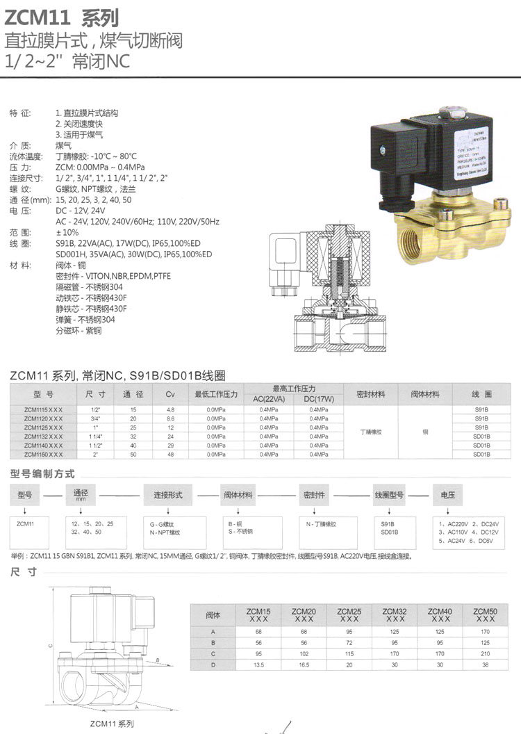 ZCM1115,ZCM1120,ZCM1125,ZCM1132,ZCM1140,ZCM1150,直拉膜片式電磁閥