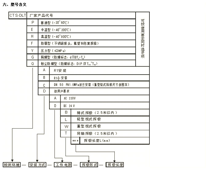 CTS-DLT-P-A-A,CTS-DLT-E-A-A,CTS-DLT-H-A-A,CTS-DLT-F-A-D,CTS-DLT-Y-A-D,光柱顯示射頻電容式物位計 |