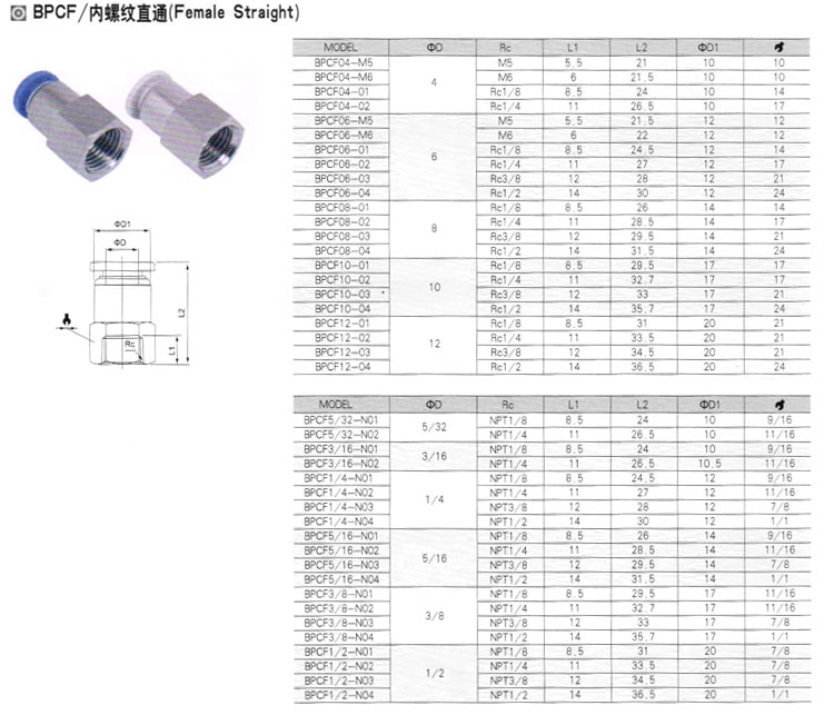 BPCF04,BPCF06,BPCF08,BPCF10,BPCF12,BPCF5/32,BPCF3/16,BPCF1/2,BPCF1/4,BPCF1/2-N04,快插式氣動管接頭 |