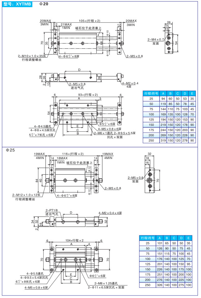 XYTMB-10*25,XYTMB-20*50,XYTMS-16*100,XYTMS-25*125,XYTMB-25*75,滑臺(tái)氣缸