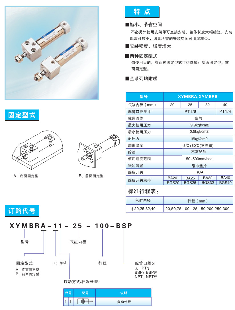 XYMBRA-11-20-20-BSP,XYMBRA-11-25,XYMBRB-11-32,XYMBRB-11-40,迷你氣缸