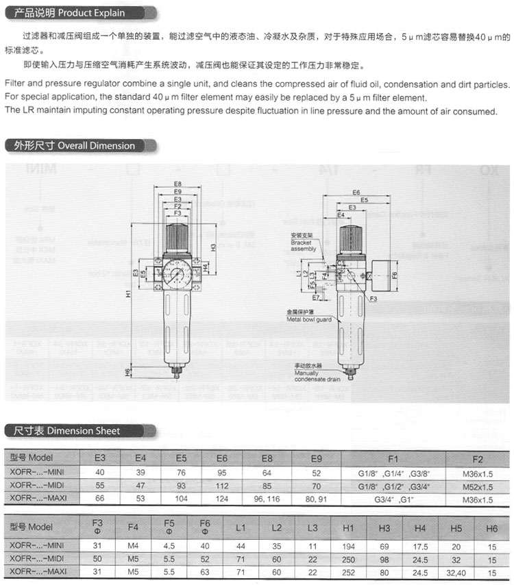 XOFR-1/8-MINI,XOFR-3/8,XOFR-3/4,XOFR-1/4,XOFR-1/2,XOFR-1,過濾調(diào)壓閥 |