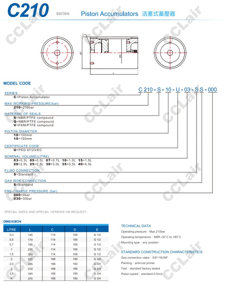 C210-S-10,C210-V-10,C210-Q-10,C210-S-15,C210-V-15,C210-Q-15,ASHUN油順活塞式蓄能器