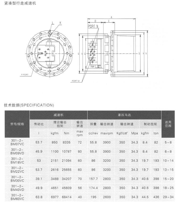 301-2-BM07VC,301-2-BM09VD,301-2-BM18VC,301-2-BM22VC,301-2-BM30VC,301-2-BM40VDVC,緊湊型行走減速機(jī)