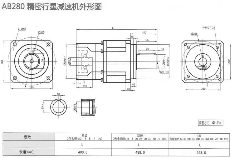 AB280-L1-3-S2-P2,AB280-L2-50-K-P2,AB280-L3-80-S2-P0,精密行星減速機 |