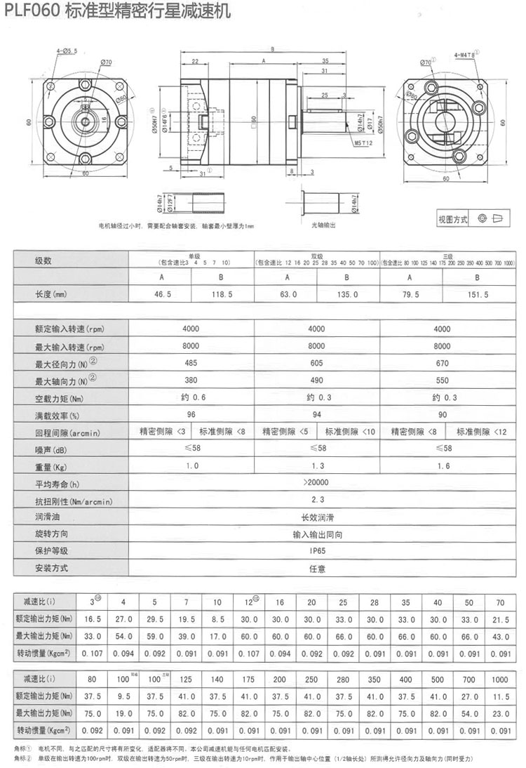 PLF060-L1-3-S2-P2,PLF060-L2-20-S2-P2,PLF060-L3-700-S2-P1,精密行星減速機