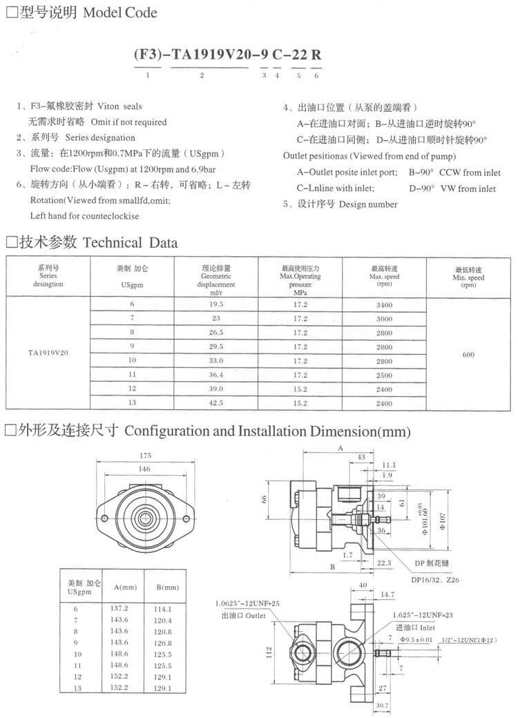 TA1919V20-8A-92R,TA1919V20-9D-92R,TA1919V20-10C-92L,TA1919V20-11D-92L,葉片泵