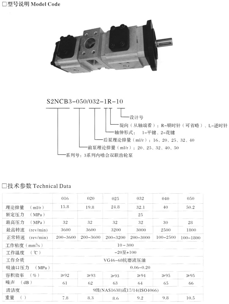 S2NCB3-020/016-1R-10,S2NCB3-025/040-1R-10,S2NCB3-032/020-1L-10,內(nèi)嚙合雙聯(lián)齒輪泵 |