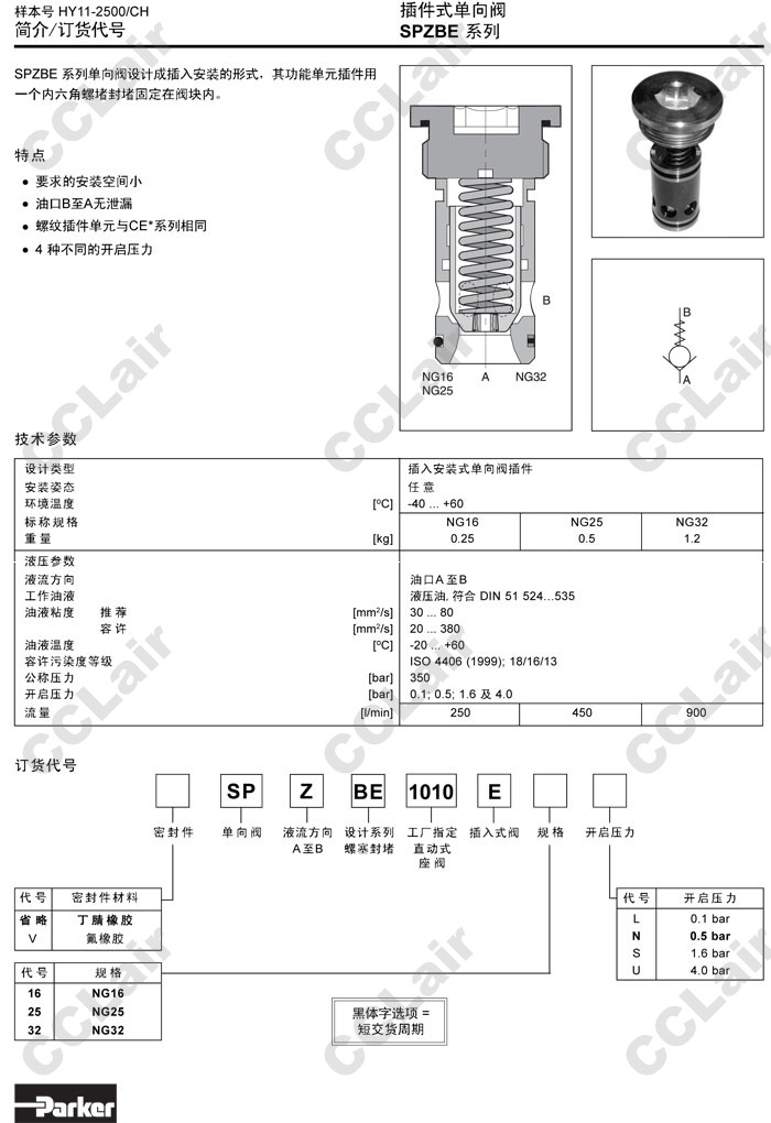 SPZBE1010E16L,SPZBE1010E25L,SPZBE1010E32L,SPZBE1010E16N,SPZBE1010E25S,Parker插件式單向閥
