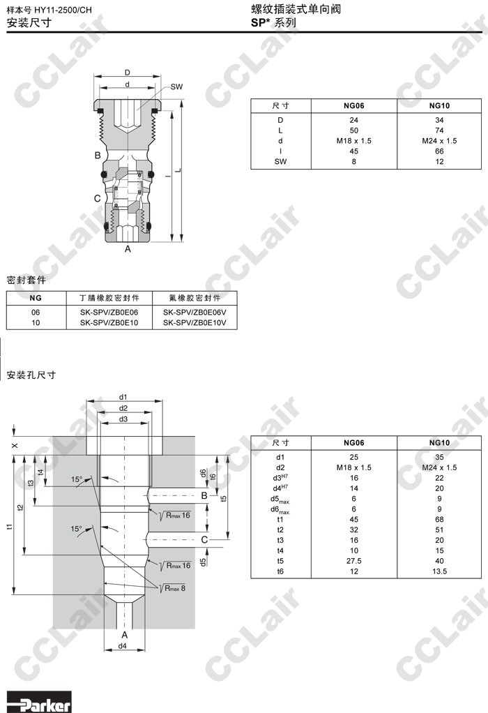 SPVB030EE06M,SPVB030EE10M,SPZB030EE06M,SPZB030EE10M,Parker螺紋插裝式單向閥