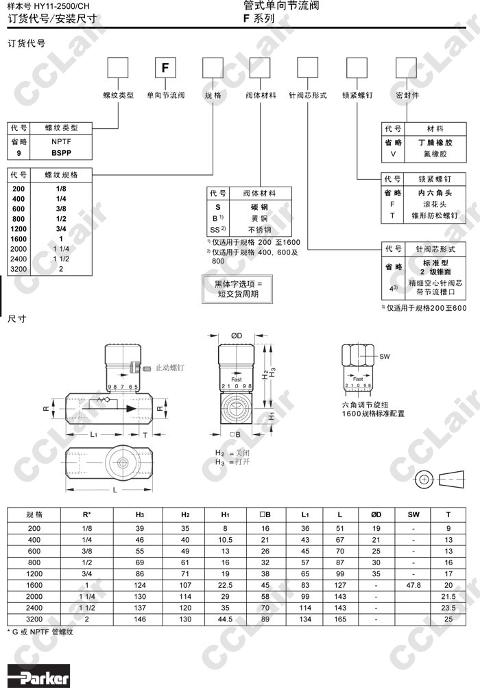 F200,F400,F600,F800,F1200,F1600,F2000,F2400,F3200,F200S,F200S4,Parker管式單向節(jié)流閥 |