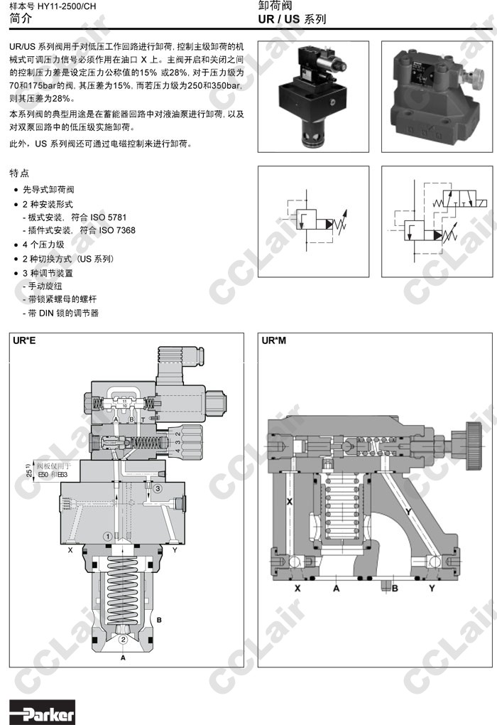 UR10M,UR25M,UR32M,UR16E,UR25E,UR32E,UR40E,UR50E,UR63E,UR10M07L1SN,Parker卸荷閥 |