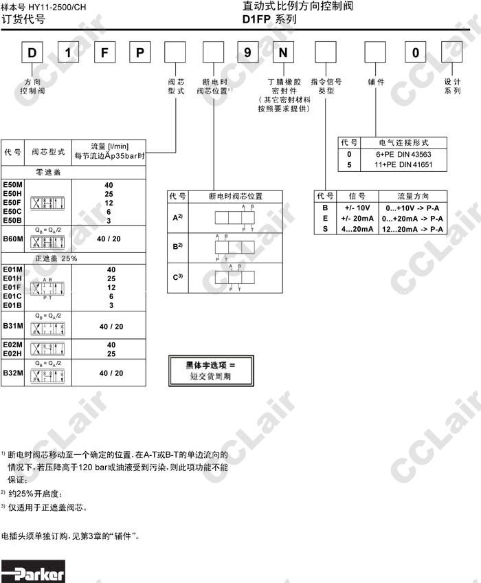 D1FPE50,D1FPB60,D1FPE01,D1FPB31,D1FPE02,D1FPB32,D1FPE50MA9NB00,Parker直動(dòng)式比例方向控制閥