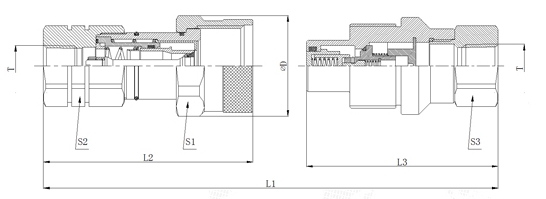| 昌林液壓 | 國際標(biāo)準(zhǔn) | L1 | L2 | L3 | ?D | S1 | S2 | S3 | T | 母接頭編號 | 公接頭編號 |