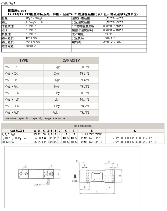 YA21-1K,YA21-2K,YA21-3K,YA21-5K,YA21-10K,YA21-15K,setech稱重傳感器 |