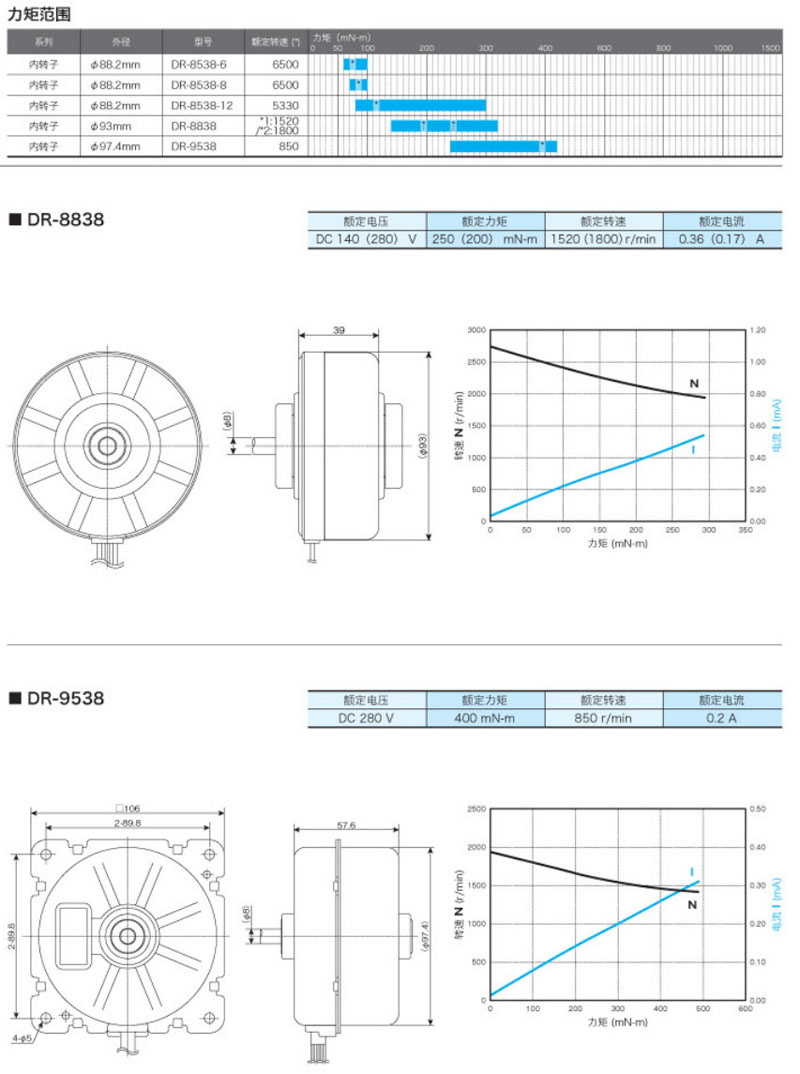 DR-8538-6,DR-8538-8,DR-8538-12,DR-8838,DR-9538,內(nèi)轉(zhuǎn)子直流無刷馬達(dá)