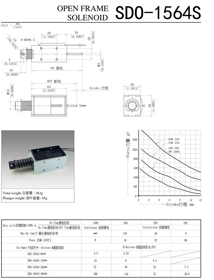 SDO-1564S-6A,SDO-1564S-12A,SDO-1564S-24A,SDO-1564S-48A,直動電磁鐵 |