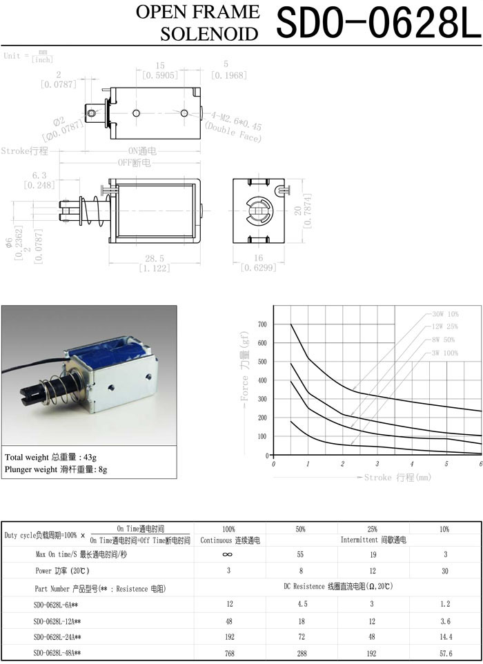 SDO-0628L-6A,SDO-0628L-12A,SDO-0628L-24A,SDO-0628L-48A,直動(dòng)電磁鐵