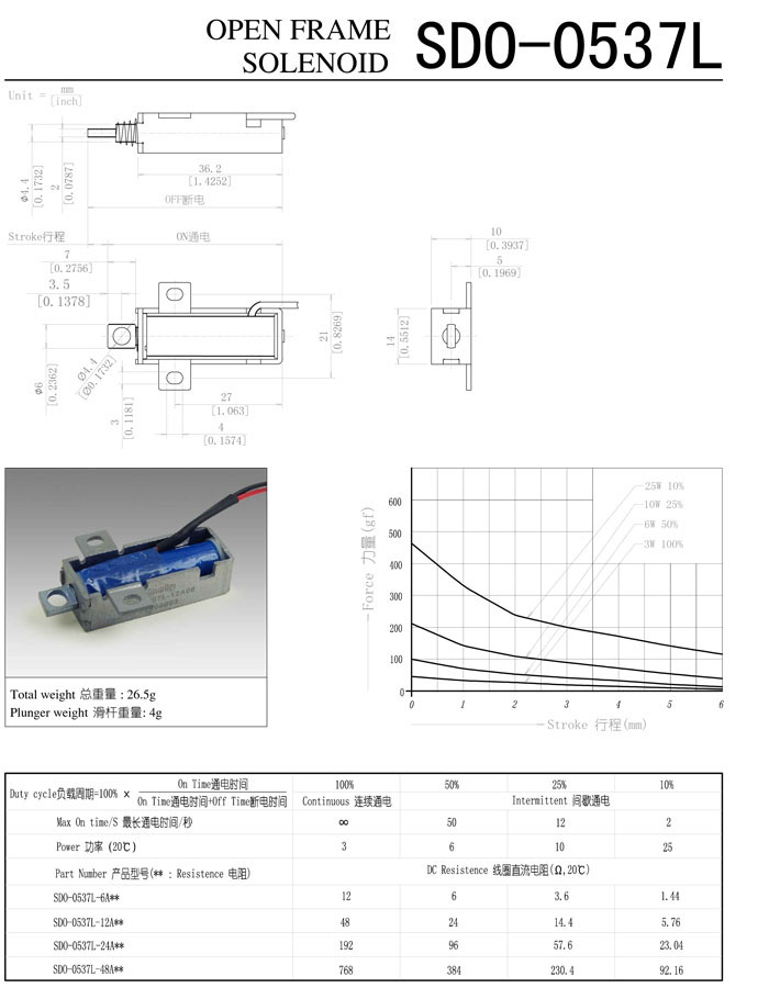 SDO-0537L-6A,SDO-0537L-12A,SDO-0537L-24A,SDO-0537L-48A,直動(dòng)電磁鐵