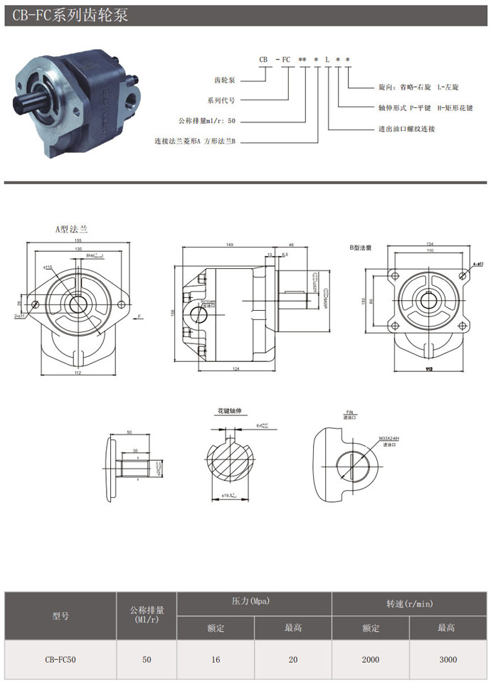 CB-FC50ALP,CB-FC50ALPL,CB-FC50ALH,CB-FC50ALHL,齒輪泵