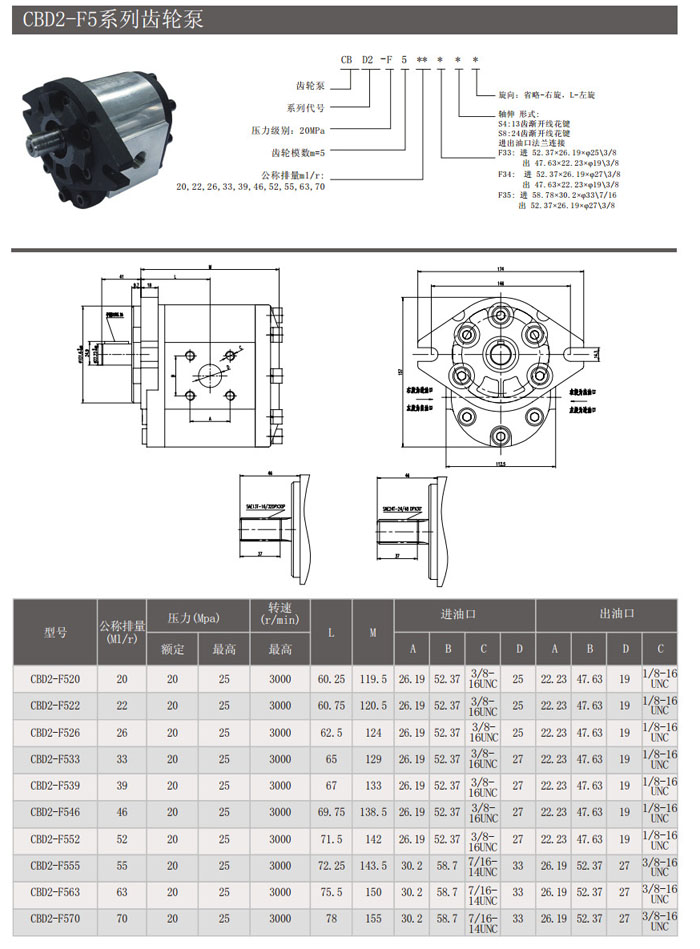 CBD2-F520,CBD2-F522,CBD2-F526,CBD2-F533,CBD2-F539,CBD2-F520F33S4,CBD2-F539F35S8L,齒輪泵