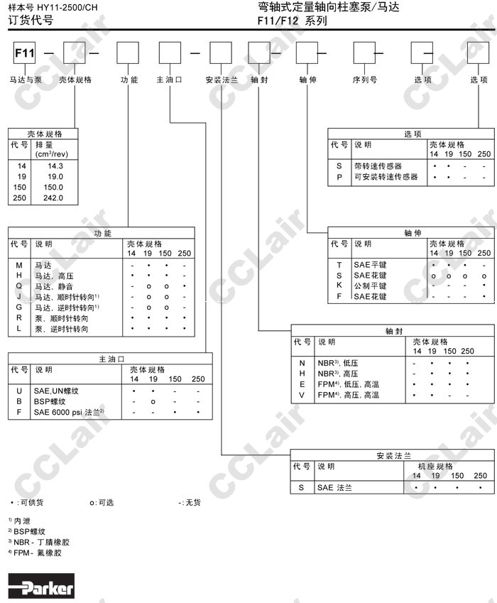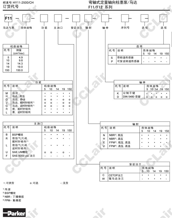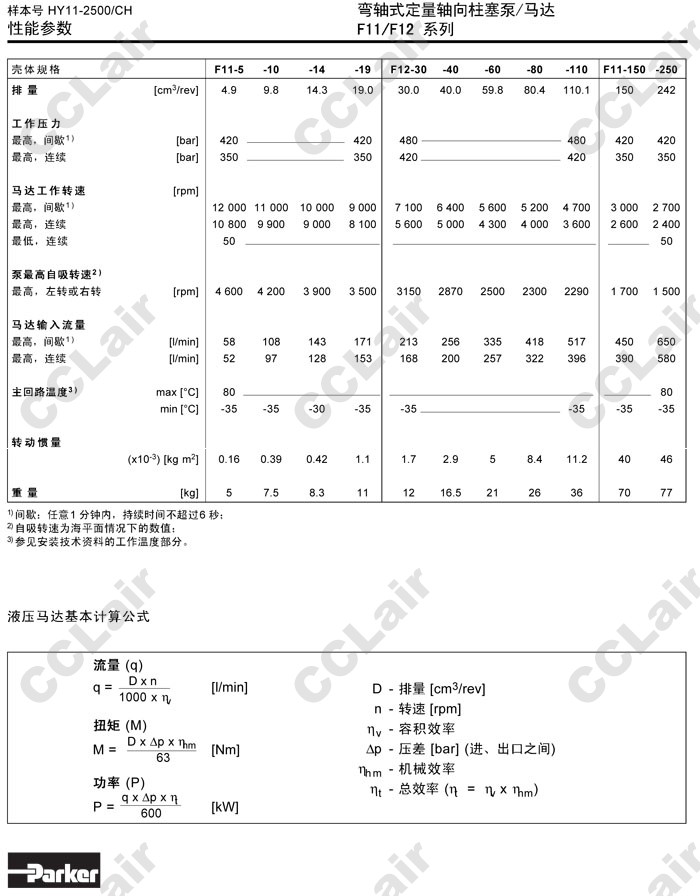 F11-005-R,F11-010-R,F11-014-R,F11-019-R,F11-150-R,F11-005-RB-CN-K,Parker彎軸式定量軸向柱塞馬達 |