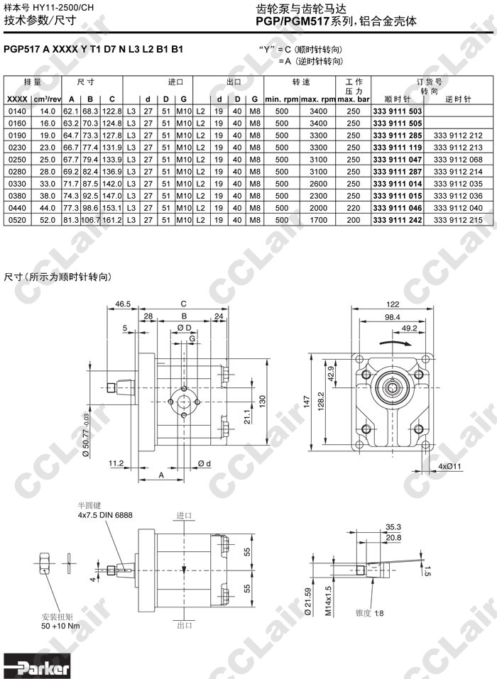 PGP517A,PGP517M,PGP517B,PGP517A0140CD1H2,PGP517M0140CD1H2,PGP517B0140CD1H2,Parker齒輪泵