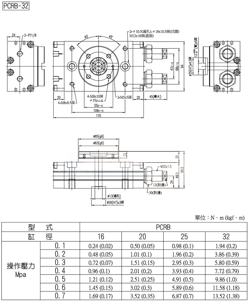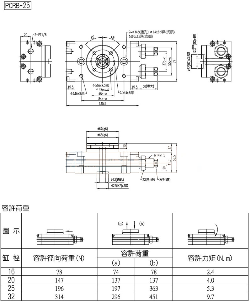 PCRB-16,PCRB-20,PCRB-25,PCRB-32,panix旋轉(zhuǎn)氣壓缸