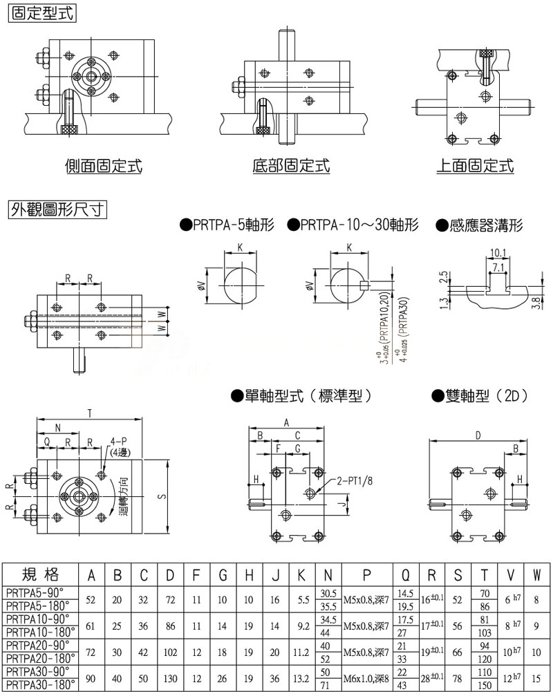 PRTPA-5-90,PRTPA-10-90,PRTPA-20-180,PRTPA-30-180,panix回轉(zhuǎn)氣缸