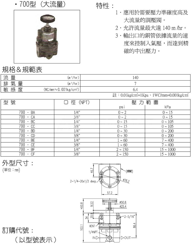700-BA,700-CA,700-BC,700-CC,700-BD,700-CD,700-BE,panix精密調(diào)壓閥 |