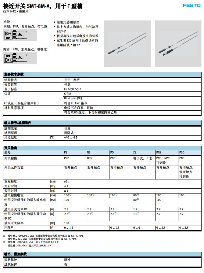 SMT-8M-A-PS-24V-E,SMT-8M-A-PO-24V-E,SMT-8M-A-NS-24V-E,festo接近開關(guān) |
