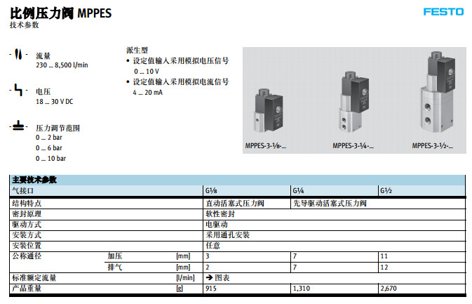MPPES-3-1/8-2-010,MPPES-3-1/4-2-010,MPPES-3-1/2-2-420,festo比例壓力閥 |