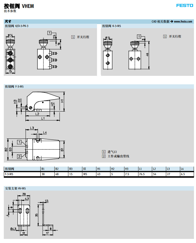 K/O-3-PK-3,K-3-M5,F-3-M5,festo按鈕閥