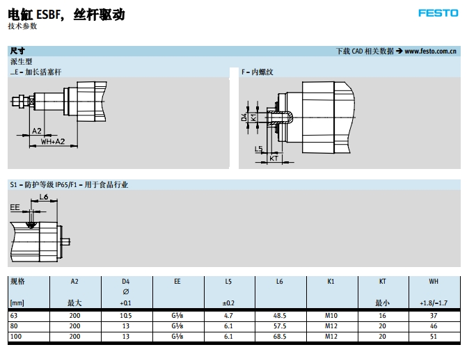 ESBF-BS-63-100,ESBF-BS-80-100,ESBF-BS-100-100,festo電缸
