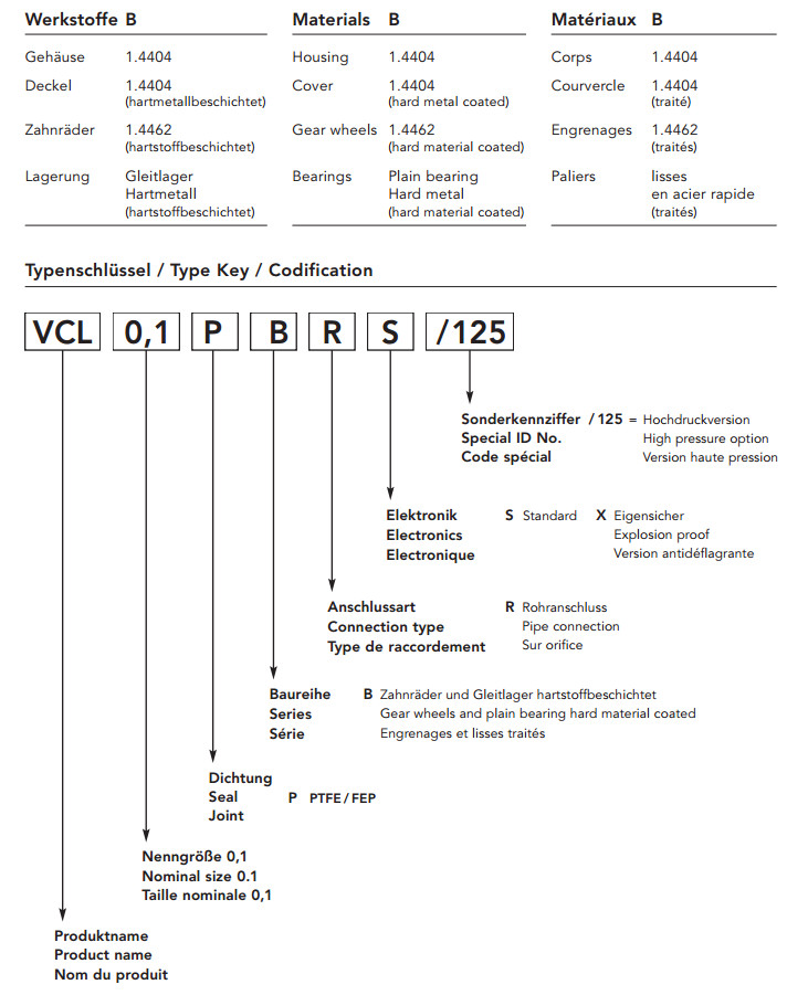 VCL0.1PBRS/125, kracht齒輪流量計