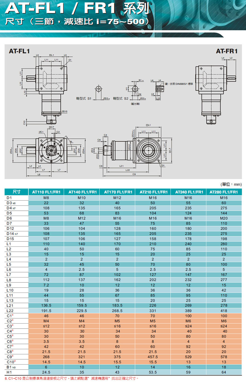 AT065-FL1,AT075-FL1,AT090-FL1,AT210-FR1,AT240-FR1,AT280-FR1,伺服專用減速機