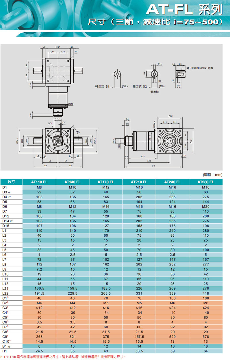 AT170-FL-075-S1,AT210-FL-075-S1,AT240-FL-075-S1,AT280-FL-075-S1,伺服專用減速機
