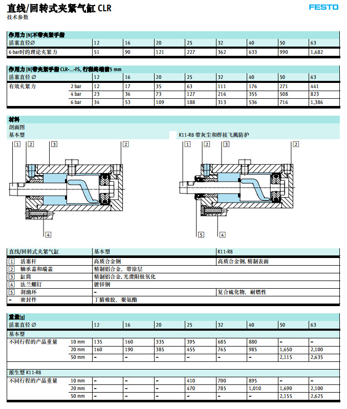 CLR-12,CLR-25,CLR-32,CLR-40,CLR-50,CLR-63,festo夾緊氣缸