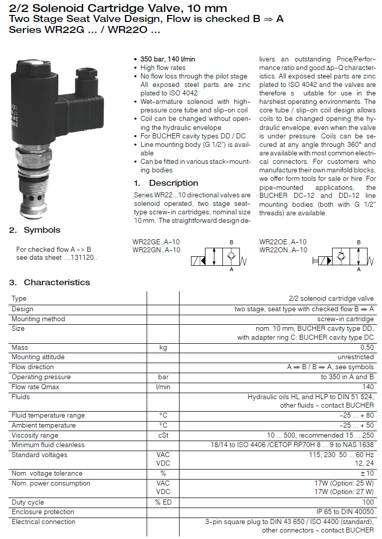WR22GEDA-10-1,WR22OEDA-10-1,WR22GNDA-10-1,WR22ONDA-10-1,WR22GECA-10-1,Bucher方向閥