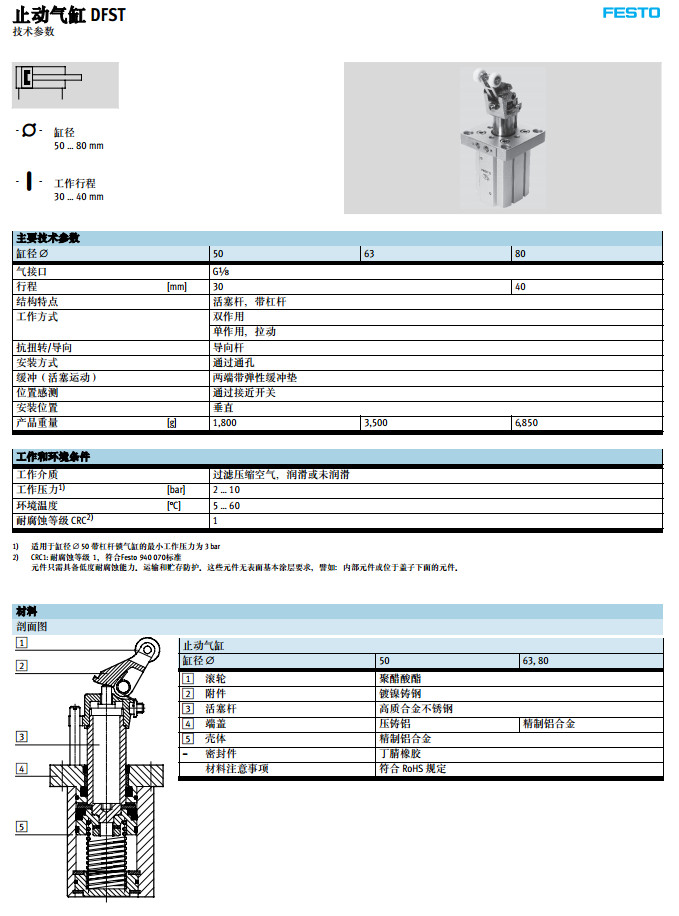 DFST-50-30-DL,DFST-63-30-DL,DFST-80-40-DL,festo止動氣缸 |