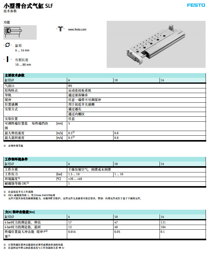 SLF-6-10,SLF-10-10,SLF-16-10,SLF-6-20,SLF-10-30,festo小型滑臺(tái)式氣缸