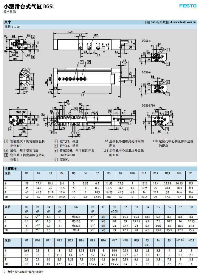 DGSL-4,DGSL-6,DGSL-8,DGSL-10,DGSL-12,DGSL-20,festo小型滑臺(tái)式氣缸